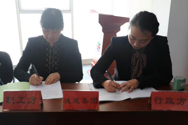 為推動全市集體協商工作深化發展,促進勞動關系和諧穩定,進一步擴大集體協商影響力,3月25日上午,城建集團參加了市總工會在山東京博控股集團有限公司會議室舉辦的全市集體協商集中要約暨“1+3”集體合同現場集中簽約活動。職工方首席代表工會主席付建玲、企業方首席代表被委托人勞動人事處長李婷婷在集體合同上簽字。